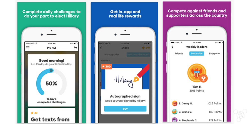 根據(jù)外媒 9to5Mac 的報(bào)道,這款 Hillary 2016 將會(huì)為 iOS 用戶提供黨政知識(shí)等一些游戲方面的日常挑戰(zhàn),還可以和全國(guó)各地的希拉里支持者進(jìn)行比賽,并且提供數(shù)字化和現(xiàn)實(shí)生活中的一些獎(jiǎng)勵(lì),比如希拉里親筆簽名的紀(jì)念品等等。