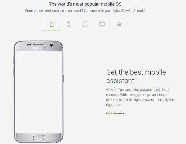 新官網(wǎng)界面將安卓設(shè)備分為五大類,包括手機(jī)、平板、Android Wear、Android Auto和Android TV,但是原來的Android One設(shè)備種類不見了,Android One于2014年I/O大會(huì)上宣布,致力于為“下一個(gè)十億用戶”打造入門Android手機(jī),很多業(yè)內(nèi)人士表示,Android One項(xiàng)目已經(jīng)名存實(shí)亡,但Google業(yè)務(wù)發(fā)展與Android&Chrome合作負(fù)責(zé)人Mike Hayes在今年5月份曾表示:“Android One不僅僅限于低端手機(jī),Android One已經(jīng)成為更廣闊硬件策略的一部分。”這似乎在暗示胡歌并沒有放棄該項(xiàng)目。