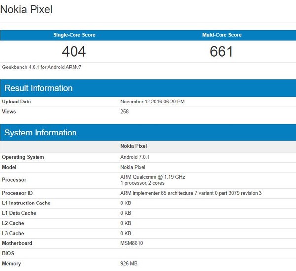 當(dāng)然,我們猜測(cè)這僅僅只是其中一款機(jī)型而已,因?yàn)樵诖酥癎eekbench上還出現(xiàn)過(guò)一款名為Nokia D1C的手機(jī),配備驍龍430處理器以及3GB RAM,配置略高一些,但顯然也只是低端機(jī)型。